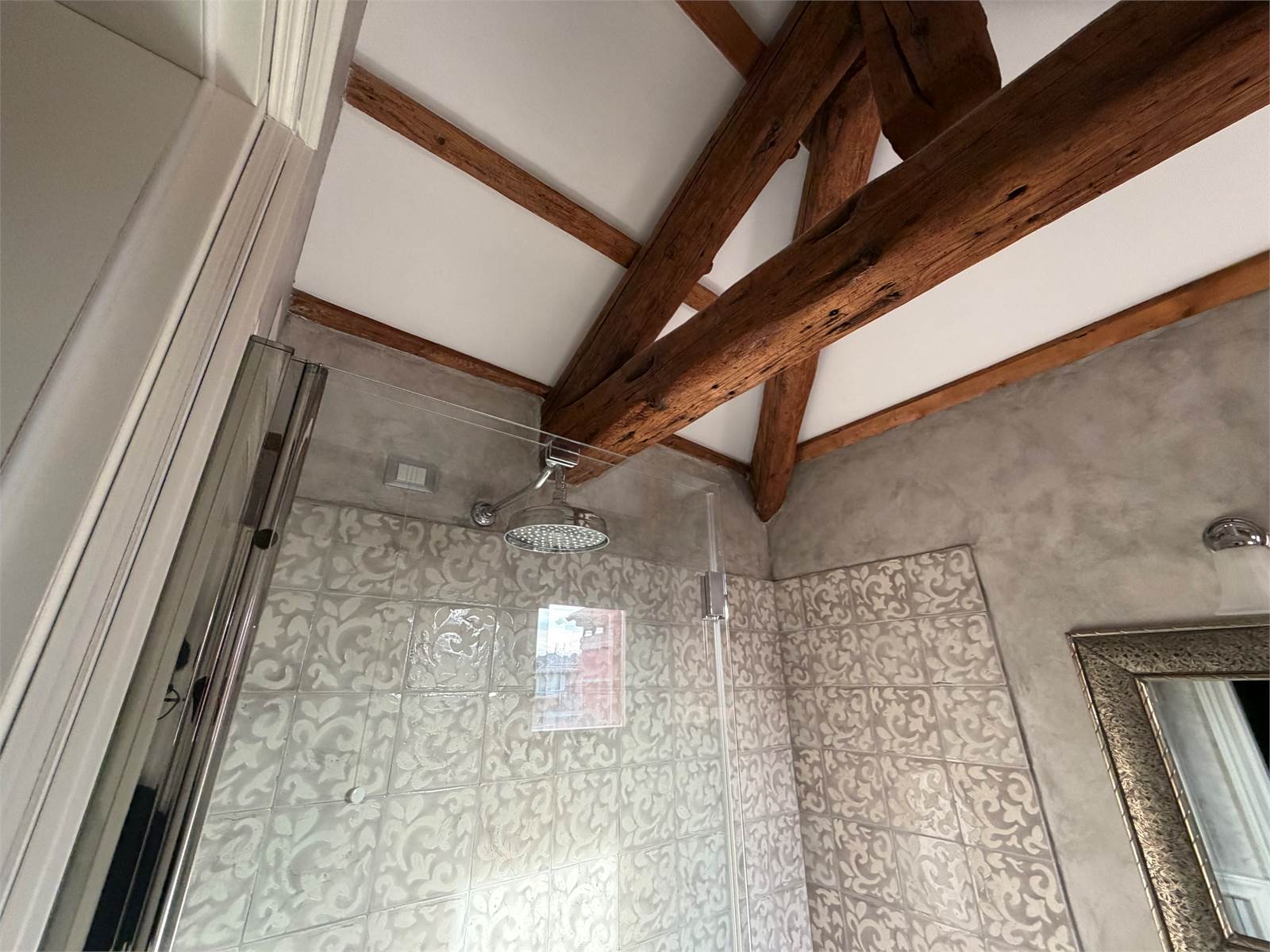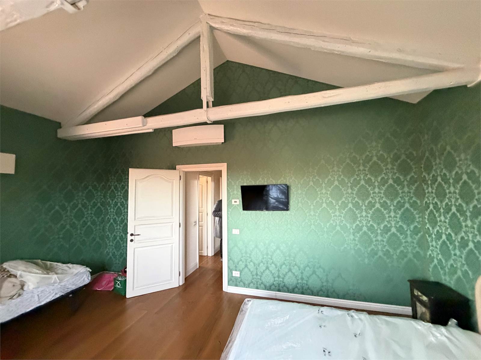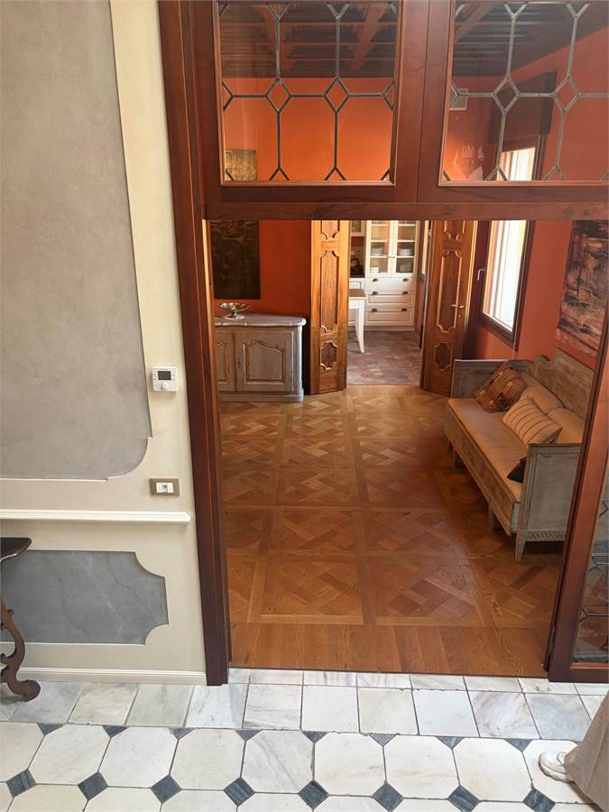 Internal Layout: The entrance leads to spacious environments enhanced by classic finishes such as Venetian terrazzo floors and restored exposed beams. The living area includes a grand representative living room, a second relaxation lounge, a private study, and an eat-in kitchen. The sleeping area features 4 double bedrooms and a spacious walk-in closet. Serving the residence are 4 finely finished bathrooms, functionally distributed to ensure privacy and comfort.